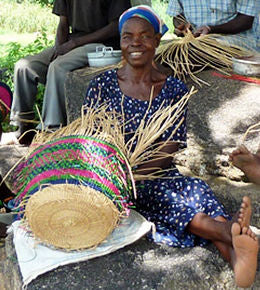 Basket weaving is typically a woman's craft. The local farming community is fraught with intemperate weather. Farming income alone is not always enough to meet the family's needs, so the women supplement it by weaving baskets.